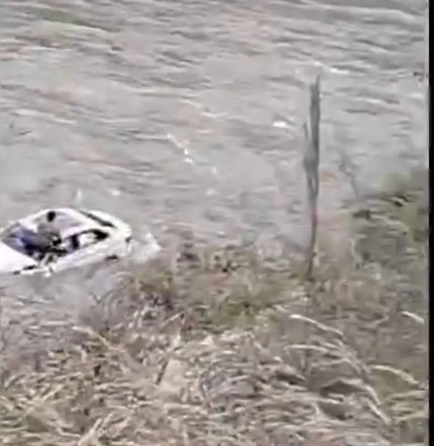 白色轿车被冲走