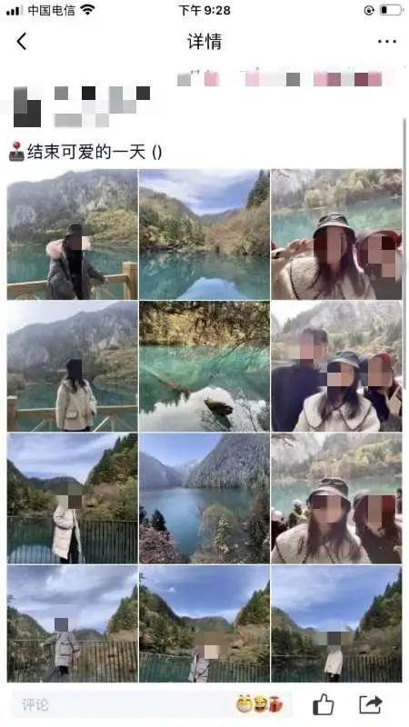 同行的文女士则在21日23时24分,在朋友圈发布了风景照以及3人的合影,并配文“结束可爱的一天”。