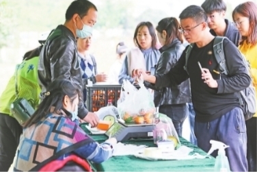 据了解,柿园采摘是华农每年秋季的特色活动,市民们可前来自由采摘和品尝。柿园里种的是苹果脆柿,是华中农业大学罗正荣教授科研团队的科研成果之一,为学校特色农产品。苹果脆柿是柿子的一种,但比一般的柿子脆,既有柿子的清甜香味,又有苹果的口感。这种柿子绿色无污染,脆甜可口,富含多种营养元素,具有较高的食用价值和药用价值。