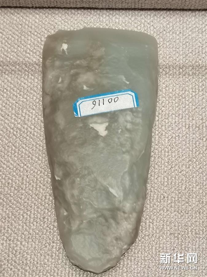 这是新疆若羌县文博馆内陈列的玉斧(8月29日摄)。 新华社记者 张晓龙 摄