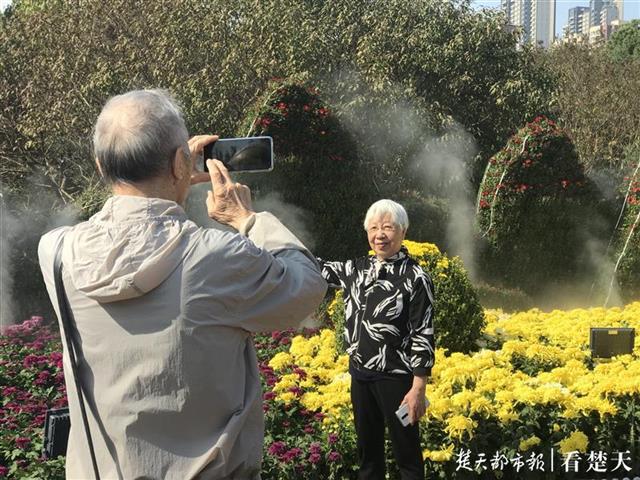 65岁的王阿姨来自兰州,受亲友邀请来武汉旅游,恰逢菊花展,身为一名摄影爱好者,她特意和亲友在今天赶到和平公园赏菊。“菊花展非常漂亮,而且人也多,能够看见武汉恢复活力真好,我非常开心。”