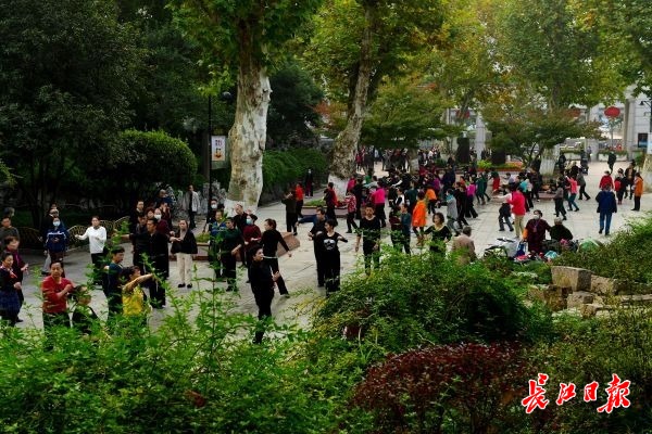 长江网10月29日讯10月29日上午,天气放晴,风和日丽。中山公园里晨练、休闲的市民络绎不绝,与一派暖色调的秋光融成温馨热闹的城市生活气息。记者李永刚 摄影报道