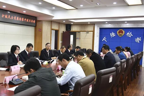 为深入学习贯彻习近平总书记关于民营经济重要讲话和指示精神,更好地为民营经济发展提供优质检察产品和法治保障,认真落实最高人民检察院、全国工商联组织开展的检察开放日活动要求,10月28日,湖北省黄石市下陆区人民检察院、区工商联共同开展服务“六稳”“六保”护航民营企业发展检察开放日暨检察机关优化营商环境推进会活动,此次开放日特邀请了下陆区10余名人大代表、政协委员、人民监督员以及民营企业家走进检察机关,深入了解优化营商环境中的检察护航举措,为检察工作建言献策。党组成员、副检察长张钢林主持会议。