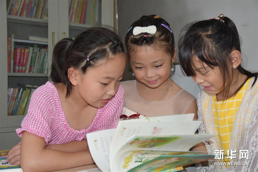 在河南省安阳市内黄县李石村,开设在超市里的图书馆吸引了不少村里的孩子(8月5日摄)。新华社记者 史林静 摄