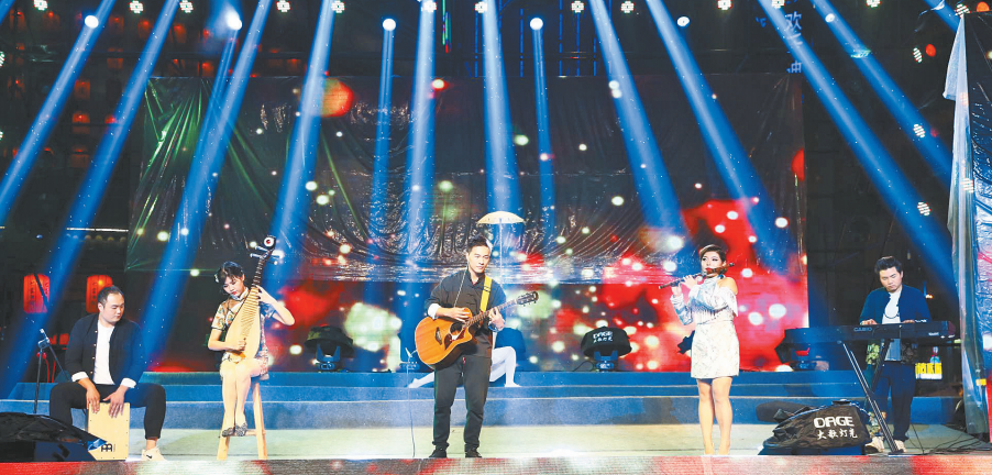 紧接着,武汉独立音乐人莫小添带来动人情歌《弹弹情》;90后乐队表演创意合奏《时光穿梭机》,用吉他、竹笛、卡洪鼓、琵琶等不同的乐器演奏,怀旧曲风带着观众穿梭于不同年代;吉庆街艺人陈媛媛用葫芦丝带来《风儿吹来了》,曲声婉转悠扬,吹进人们的心坎里。
