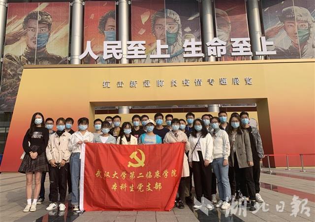 “疫情期间我们多数同学是在外地家中,只能通过网络和电视时刻关注武汉封城抗疫的点滴,今天开参观感觉更直观全面,心灵倍受触动。”来自武汉大学第二临床学院五年级的学生党员何光泽说。