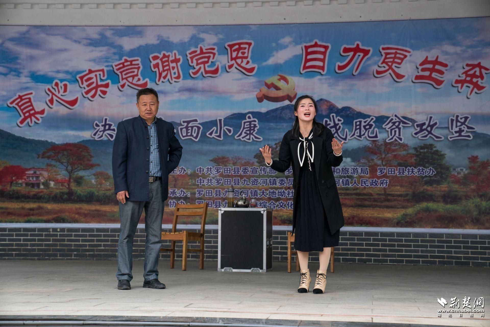 荆楚网客户端—荆楚网消息(记者 伍佳佳 刘建维 何青 何琛)“舞台剧、小品、鼓乐、舞蹈、戏剧、民间小调、彩莲船......”,10月31日,一场由乡亲们自编自导自演的精彩节目在罗田九资河镇大地坳社区轮番上演,台下男女老少看得津津有味,掌声不时响起。这支由20余人组成的农民艺术团,将“精准扶贫”“垃圾分类”“惠农政策”“文明乡风”等内容以不同的曲艺形式表演出来,深受群众欢迎,真正达到以文化人,集聚脱贫致富精气神。