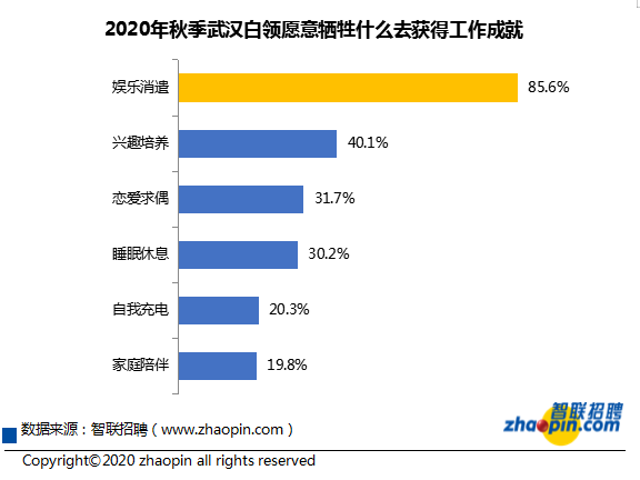 2020年秋季武汉白领安全感轻微上升,愿意牺牲娱乐消遣换取职场成就