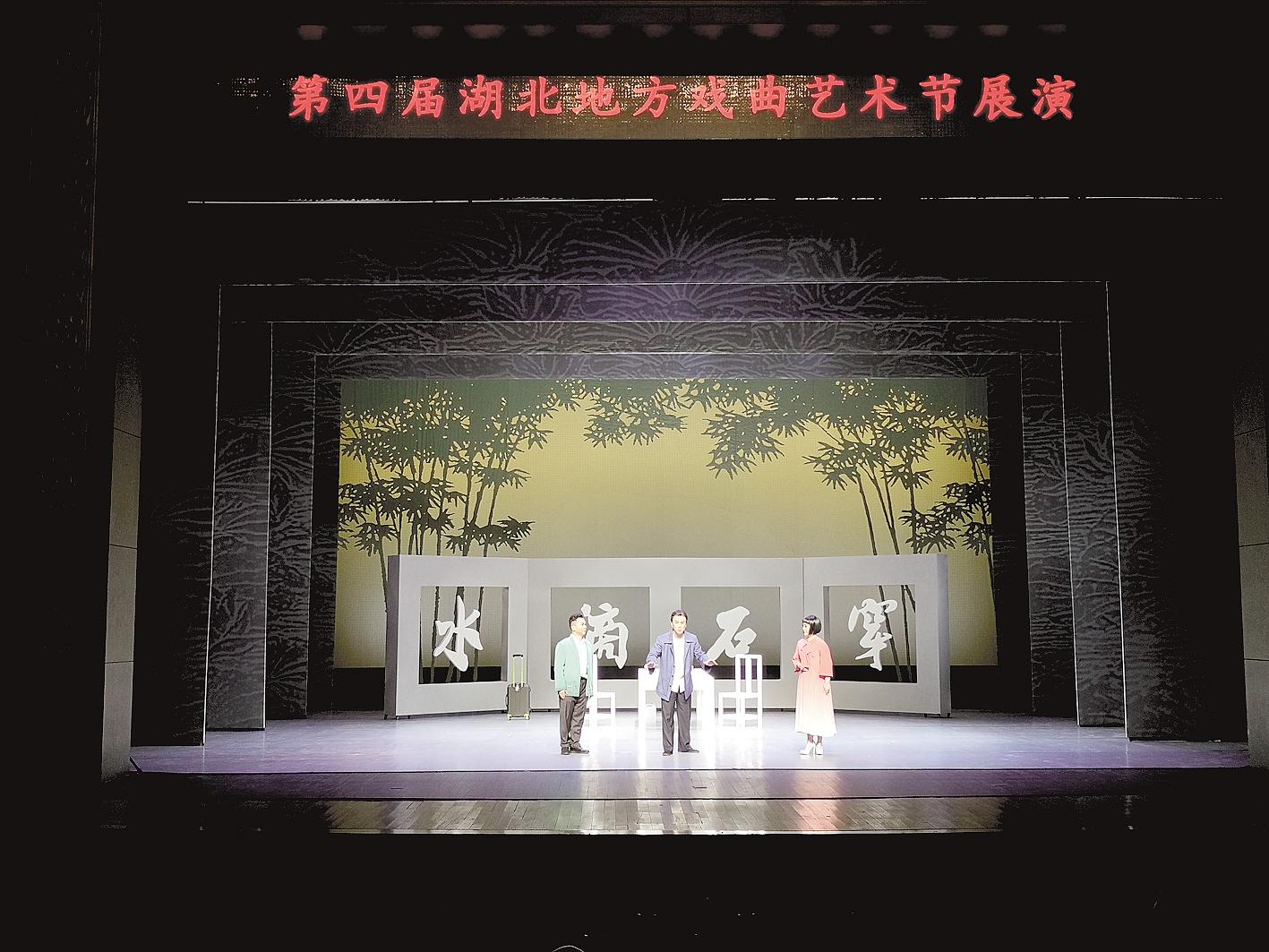 湖北日报讯 (记者农新瑜、通讯员田松)11月3日晚,由省文化和旅游厅主办,各市州文化和旅游局承办的第四届湖北地方戏曲艺术节暨“颂祖国、奔小康”小戏展演在汉启动。《明心正道看镜鉴》作为开幕演出,拉开本届艺术节的精彩序幕。