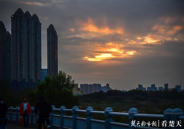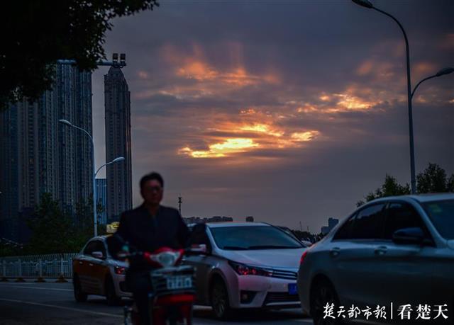 11月4日下午5时许,天色渐暗,夕阳西下,金灿灿的余晖四溅,一时间天空光芒无限。记者途经武昌沙湖大道观赏到这绝美的“火烧云”,过往行人也纷纷驻足观看。美景持续近一个小时,才慢慢地随霞光西沉。
