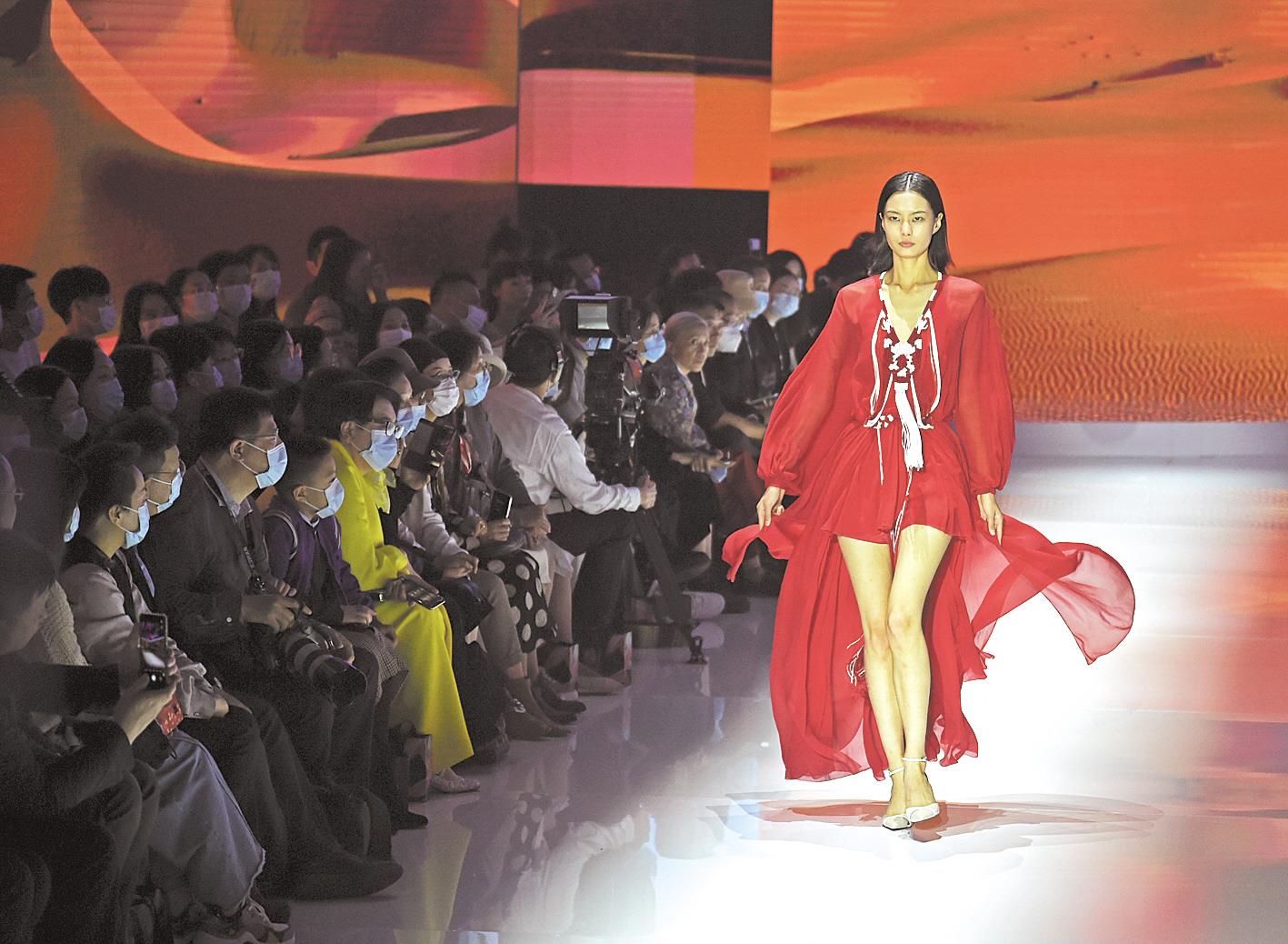 11月7日,2020武汉时装周在武汉市江汉区红T时尚创意街区开幕。开幕式上,5位“金顶奖”设计大师开启“志愿红”联合秀,致敬疫情期间驰援武汉的志愿者。为期4天的时装周,将举办20场时尚大秀、地标快闪秀、儿童模特选拔赛、云直播即秀即买及全民潮购节等系列创意活动。(湖北日报全媒记者 倪娜 通讯员 韩爽 摄)