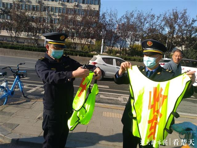 上午9时15分,执法人员在汉西北路与双墩交汇处,发现两名身着写有“收车”字样马甲的男子,手上拿着“收车”牌子,在马路上东张西望。两男子一旦发现有车辆缓缓靠边,立即上前搭讪。城管人员上前劝导,宣传相关法规,并收缴马甲及纸牌。