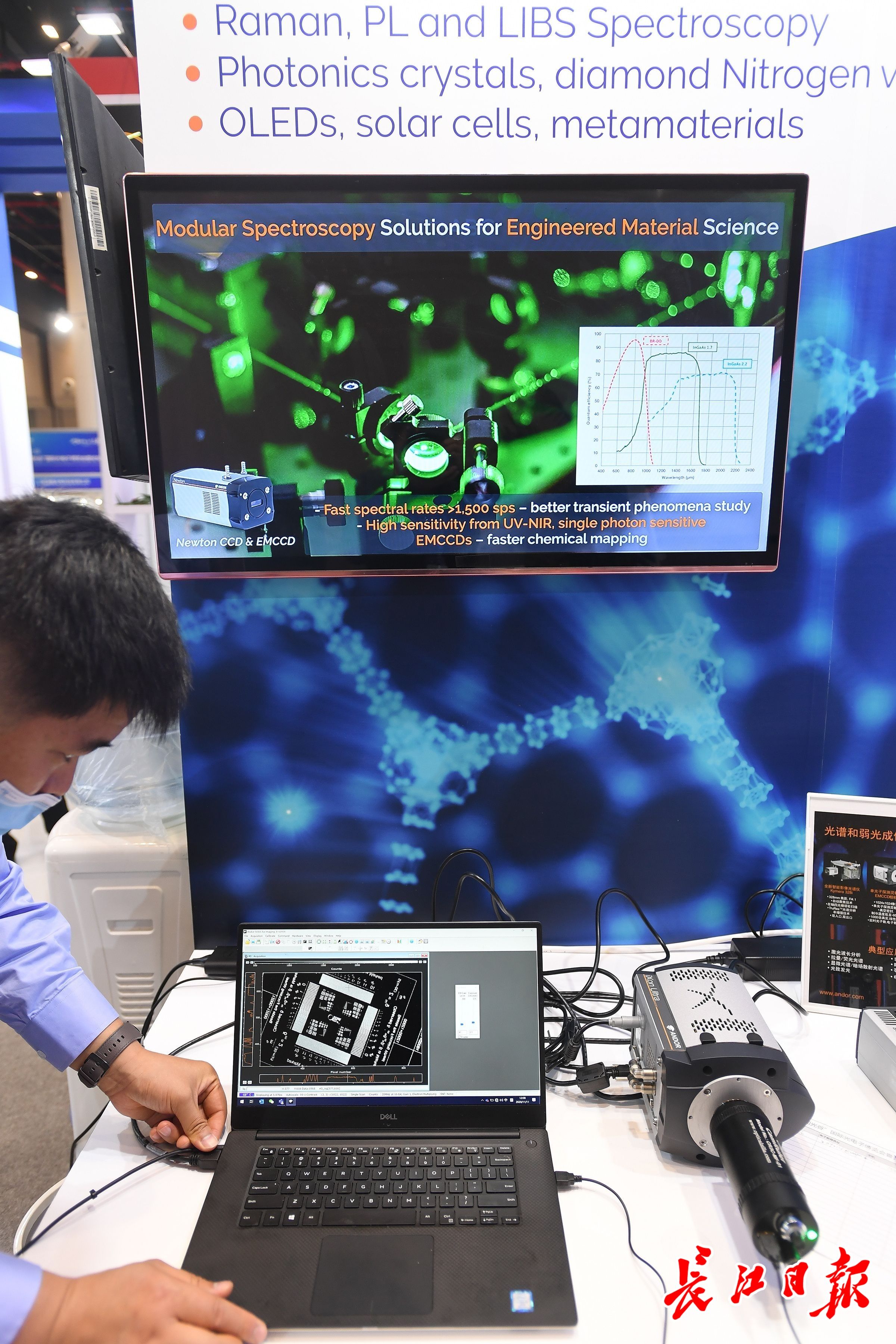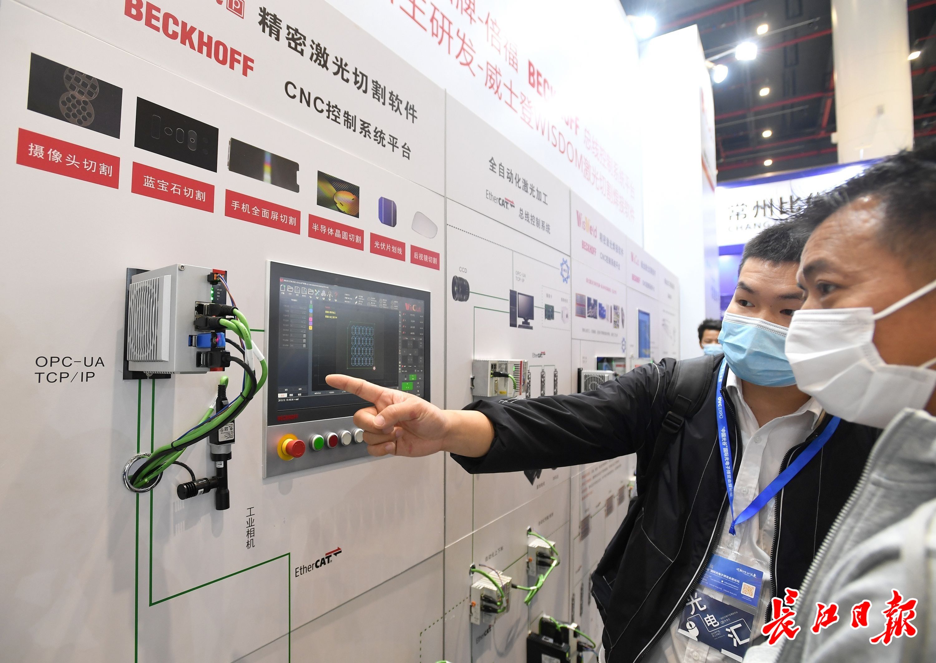 长江网11月12日讯 11月12日,为期3天的第十七届“中国光谷”国际光电子博览会暨论坛进入第二天。本届“光博会”关注疫后光电产业重建,围绕“光—芯—屏—端—网”万亿级光电子产业主线,在激光光学板块,形成上游激光器件、中游激光光源、下游激光设备厂商同台展示的激光产业全链。全球知名的理波光电、牛津仪器、海洋光学等国际企业参展,福晶科技、创鑫激光、联赢激光等国内龙头激光企业首次参展,展现疫后光电企业韧性和恢复速度。(记者周超 摄影报道)