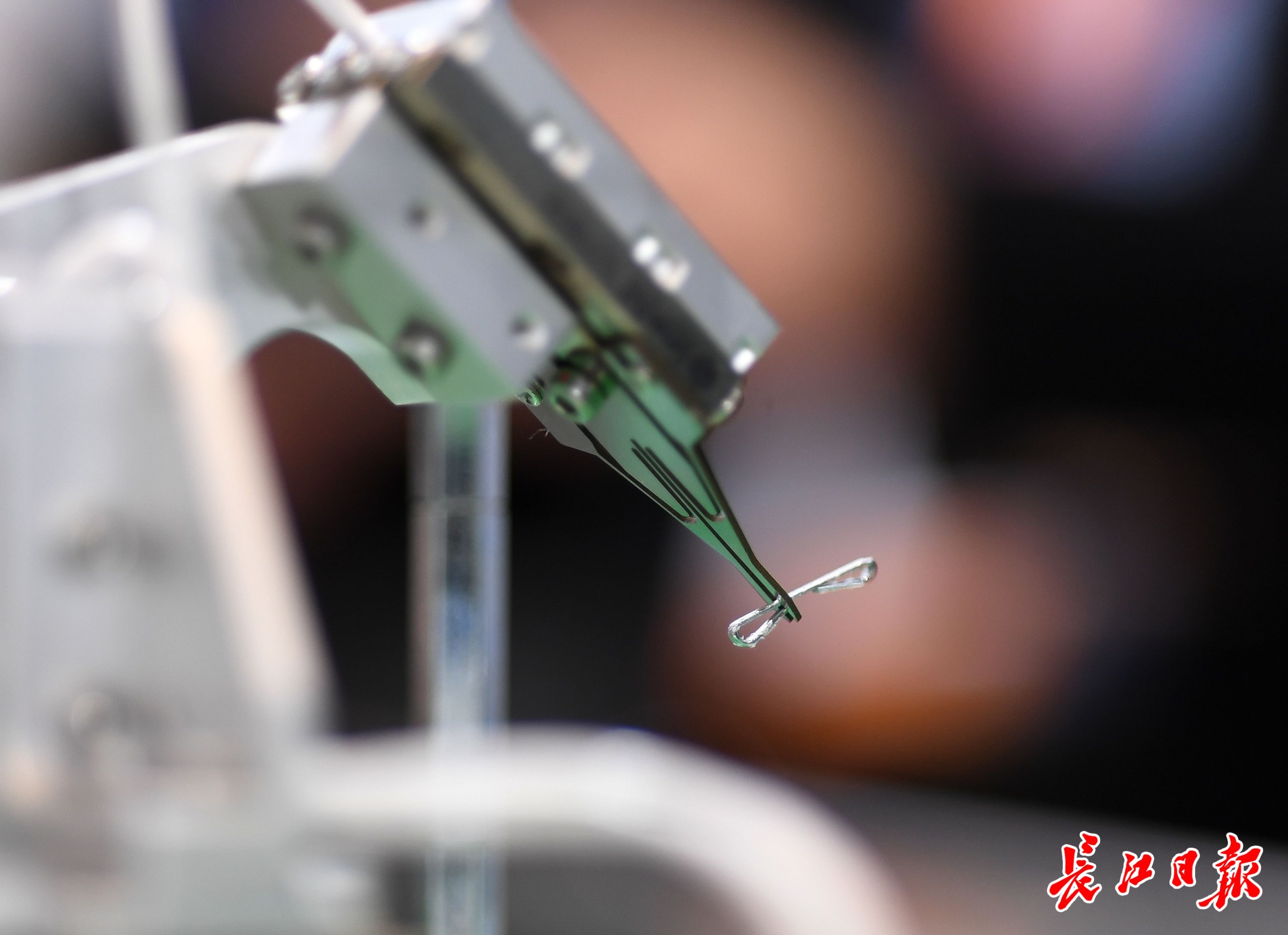 细小的机械“手”夹起订书钉。
