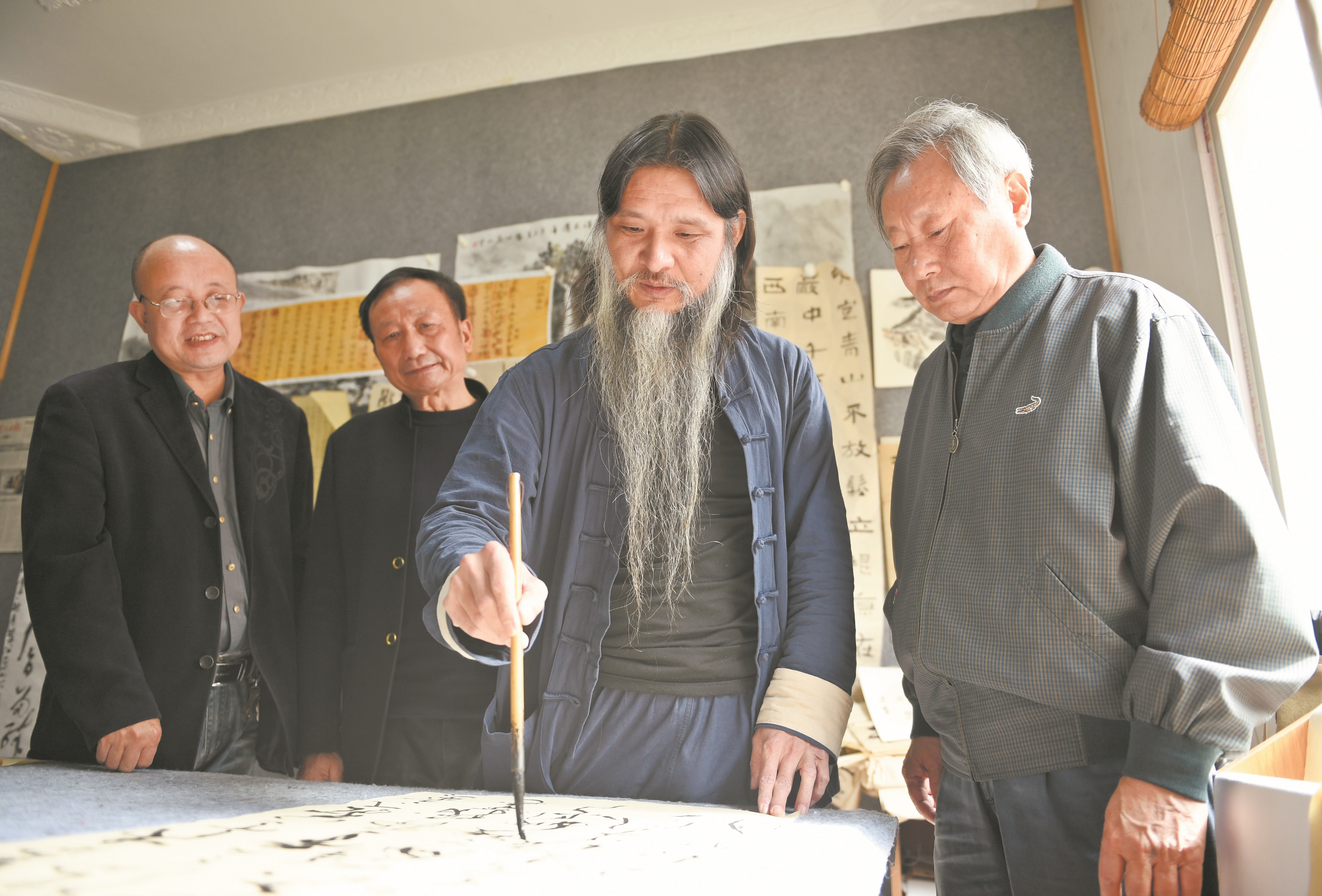 刘卫东一身唐装,脚蹬布鞋,长发飘飘,长须冉冉,一副仙风道骨之姿,人群中格外耀眼。“山本布衣,躬耕陇亩,性嗜酒,喜交游”,这是刘卫东对自己的评价,也是记者对他的初印象。