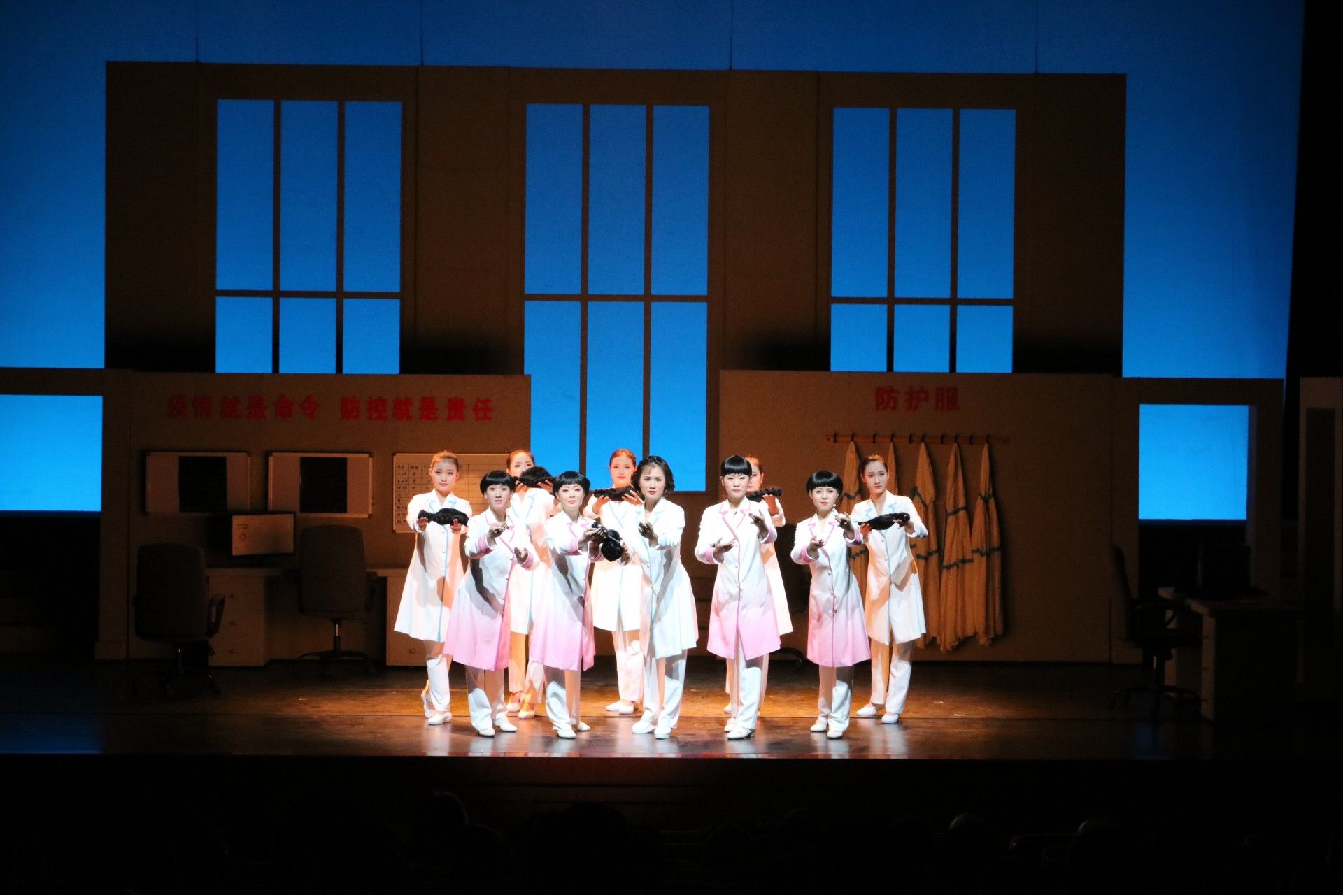 黄梅戏曲《疫·春》声声传情,将发生在黄冈的抗疫故事娓娓道来。该剧以男、女主人公鲁海威和胡宁湘行动线为纽带,构成了“剪发”、“庆生”、“亲情”、“抢救”、“遗爱”五场戏。无论是“剪发”中护士小马对恋人失忆的诉说,“庆生”中众医护为退休老党员黄大爷庆祝生日,“亲情”中胡宁湘对重症患者何嫂的抚慰以及与女儿点点梦中相会的情景,“抢救”中鲁海威与深明大义的母亲超越时空的对话与对唱,还是“遗爱”中何嫂对众医护人员的感恩,每部剧目都催人泪下。一名应邀观演的医务人员在看完演出后说到:“剧目的情节内容很真实,让我回想起当时和山东医疗队的同志并肩作战、共同抗疫的情景,激励我继续用心履行好医务人员责任担当。”