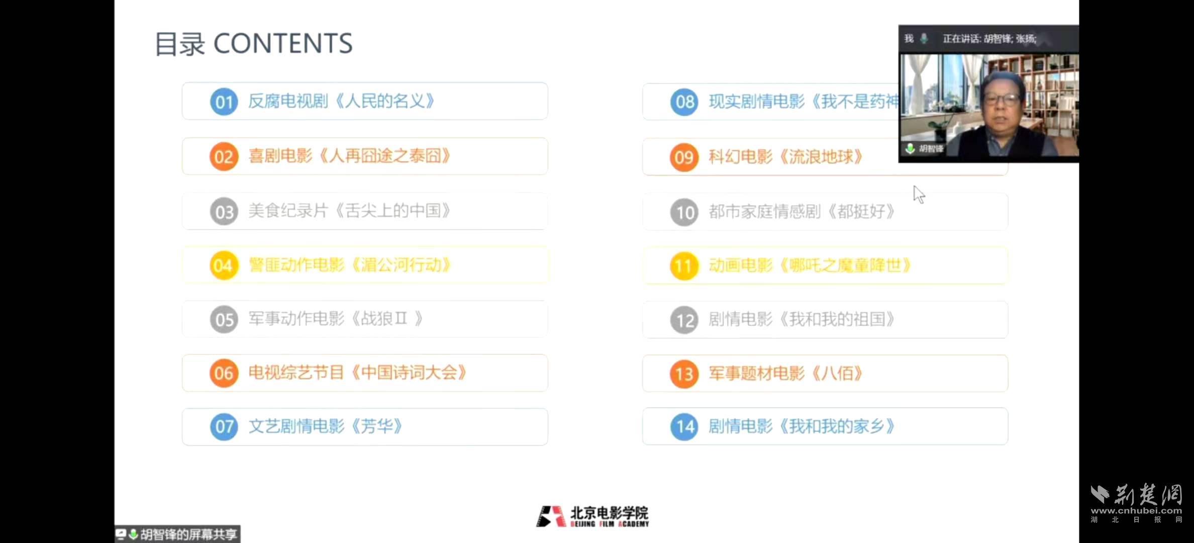 荆楚网客户端—荆楚网消息(记者张扬)11月20日,北京电影学院副校长胡智锋做客“荆楚文艺名家讲堂”(第八期),讲述他关于《近年来中国现象级影视作品观察与思考》。讲堂由荆楚网连线直播,吸引6万余网友围观。