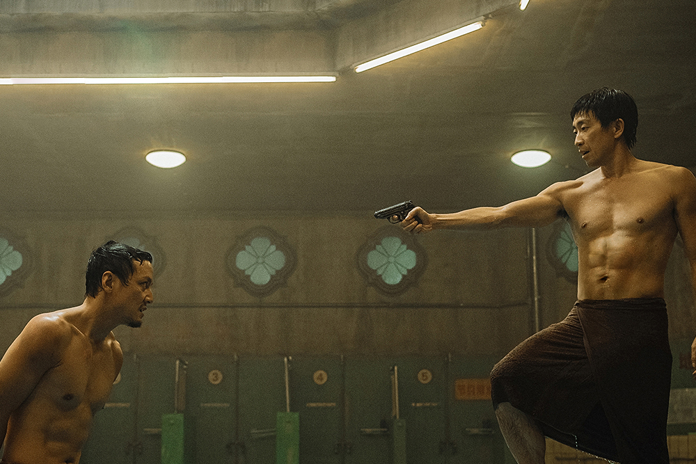 电影《除暴》剧照,吴彦祖和王千源赤膊打斗。片方供图