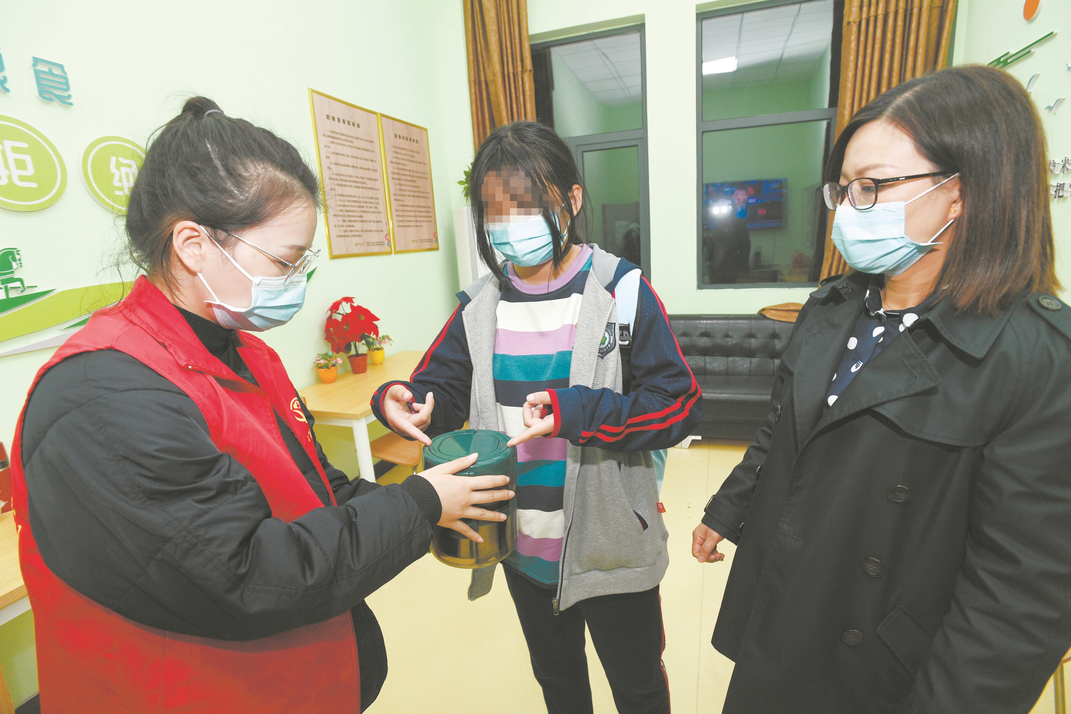 天色越来越暗,韩婷几次站在社区门口张望,直到7时许,一个身着校服的小女孩在夜色中走近。“甜甜,快进来。”两人热情招呼,陈丽娟帮她拿书包,韩婷拿起保温饭盒,陪着这个叫甜甜的小女孩回家。打开房门,韩婷拧开保温饭盒的盖子,站在旁边看着甜甜吃。