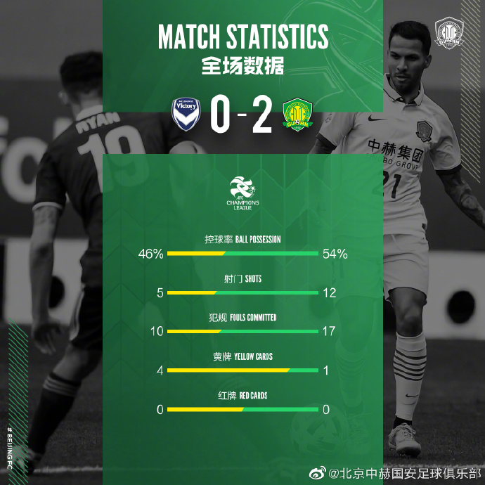 此后北京国安仍主导着比赛,但场上比分未再被改写。最终国安2:0战胜墨尔本胜利,取得亚冠小组赛四连胜,提前出线。