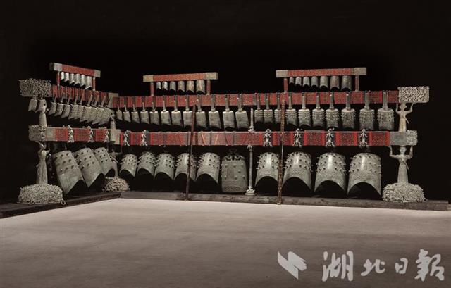 曾侯乙编钟1978年出土于湖北随州曾侯乙墓,年代为战国早期。钟架长7.48米、高2.65米。全套编钟共六十五件,分三层八组悬挂在呈曲尺形的铜木结构钟架上,上层为三组共19件钮钟、中下层五组共45件甬钟,及一件楚惠王赠送给曾侯乙的镈钟所组成。钟及架、钩上共有铭文3755字,内容为编号、记事、标音及乐律理论。每件钟均能奏出呈三度音阶的双音,整套编钟音域可跨五个半八度,十二个半音齐备,可以旋宫转调。其音列是现今通行的C大调,能演奏五声、六声或七声音阶的乐曲,曾侯乙编钟的出土改写了世界音乐史。