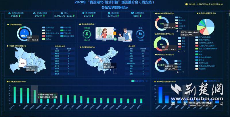 2020年“我选湖北”招才引智巡回推介会(西安站)会场实时数据展示。通讯员供图