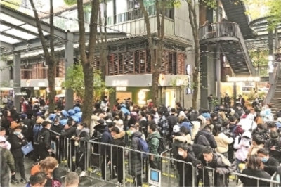 排队的顾客兴奋又着急,从旁边路过的人觉得疑惑又好笑,“为了喝杯奶茶,排这么久的队?”觉得不可思议的路人,也忍不住拿出手机,拍下视频,发在朋友圈和微信群。