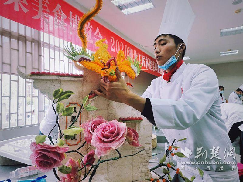 邹志平介绍,大赛竞赛项目包括中式烹饪、中式面点、冷拼雕刻、中餐宴会服务四个类别,分为个人赛和团体赛。其中,中式烹饪特别要求选手在热菜项目上准备一道传统的楚菜名菜,和一道以鱼为原材料的菜品;面点项目中的发面和酥皮面点,要求选手对湖北传统小吃进行创新和技能口味的提升;选手在冷拼雕刻环节的创作中要紧扣楚文化;中餐宴会服务的摆台和选手衣着也要体现荆楚元素。