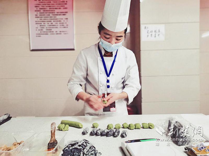 来自湖北经济学院的选手沈思静正在制作面点 通讯员供图