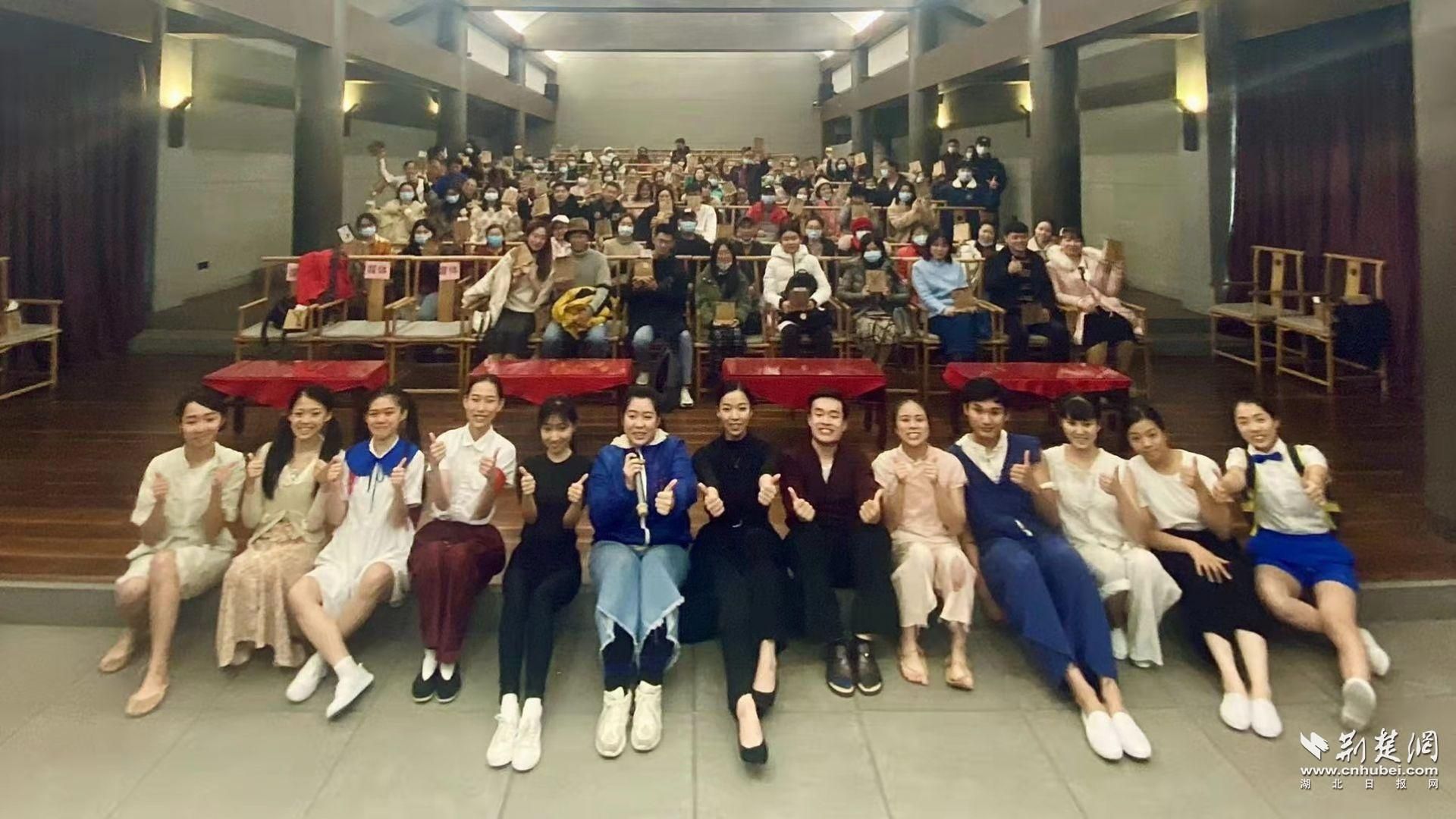 荆楚网客户端-荆楚网消息(记者叶辉 通讯员王诗琳)12月4日,由澳门霜冰雪创作实验剧团、澳门大学学生会戏剧社组成的团队,携全国巡演话剧《苦尽甘来》在黄鹤楼公园落梅轩上演。这是澳门青年致敬英雄城市武汉的一份献礼,也是他们兑现疫情期间约定的一次演出。