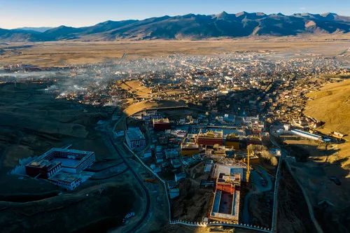 这是12月2日无人机拍摄的沐浴在晨曦中的四川省甘孜藏族自治州理塘县城。当地通过老城区改造等一系列措施,打造出著名景区“千户藏寨”,包括勒通古镇、仁康古街、长青春科尔寺等,集中展现了理塘的历史文化魅力。新华社记者 沈伯韩 摄