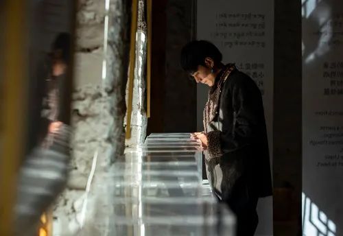 12月3日,在四川省甘孜藏族自治州理塘县勒通古镇的仓央嘉措微型博物馆,丁真小心地调整展品展示柜的位置。作为当地文旅企业员工,这里将是丁真未来的工作场所之一。新华社记者 沈伯韩 摄