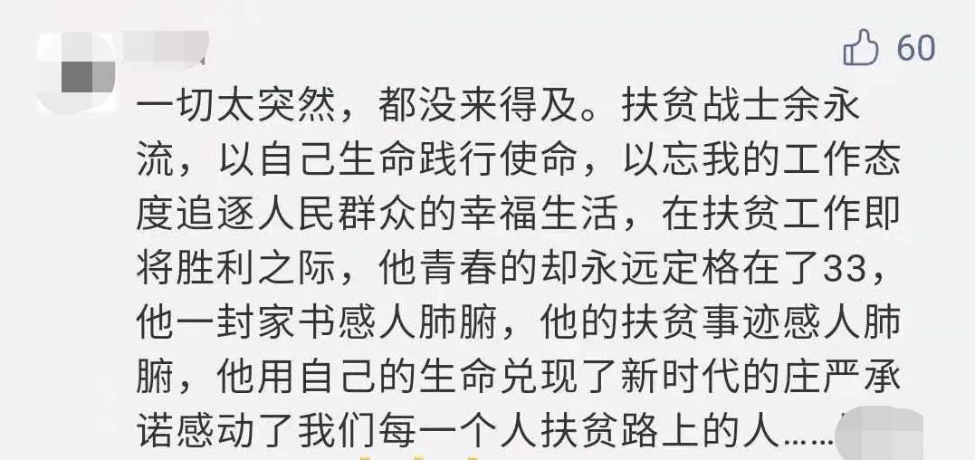 他写道,“绝不能让一名群众在小康的路上掉队,这是我们驻村干部的使命和工作职责。面对部分特殊困难群体,实实在在的帮扶行动为困难的家庭送来温暖和希望……”
