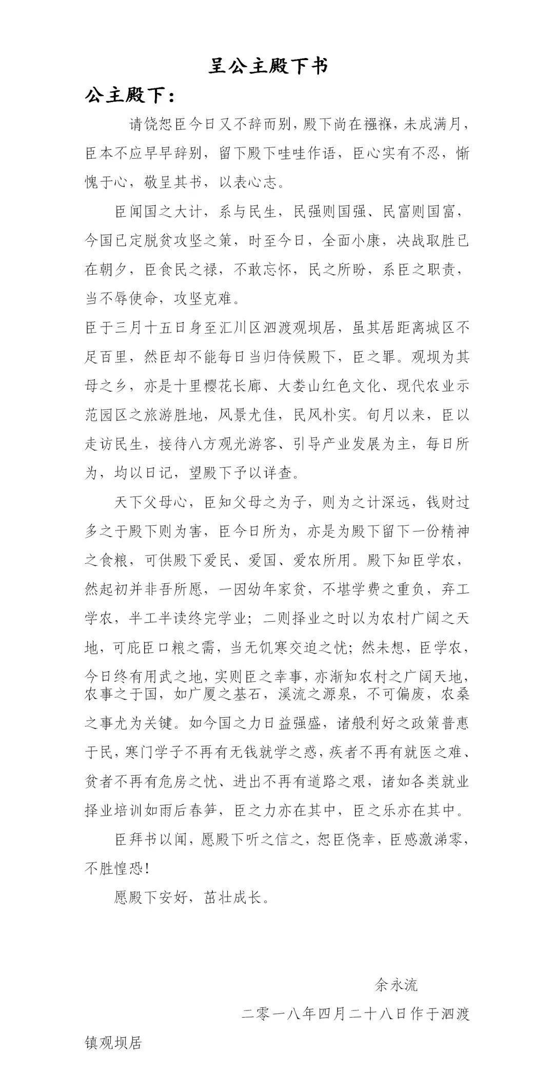 在这封家书中,余永流称呼自己在襁褓中的女儿为“公主殿下”,对女儿的疼爱、愧疚与希冀溢于言表,对脱贫攻坚事业的挚爱和坚守也让人肃然起敬。