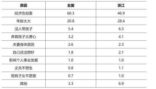 二是生育意愿较低。调查显示,浙江省育龄女性的平均理想子女数为1.65个,比全国平均水平低0.14个。