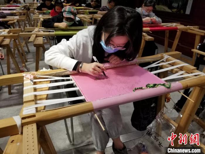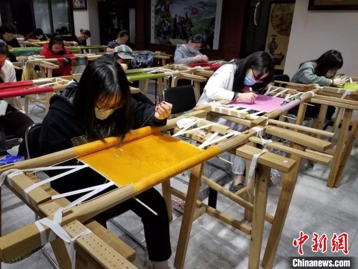 图为武昌首义学院学生正在制作汉绣。武昌首义学院供图