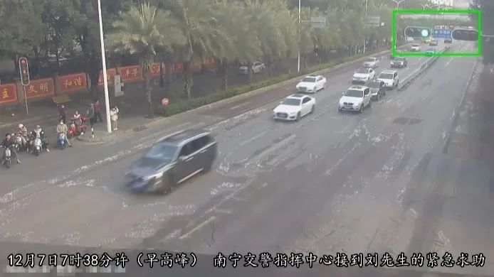 报警台随即将警情联动至南宁交警指挥中心。交警指挥中心迅速启动应急救援机制,第一时间引导刘先生避开交通堵点。