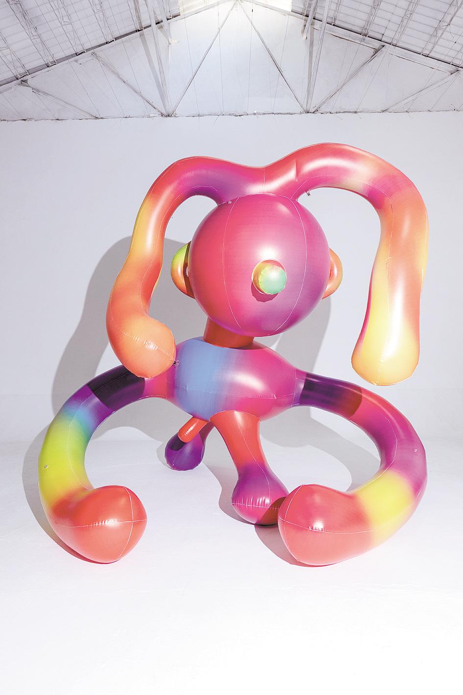 来自英国皇家艺术学院的刘锦鹏是一位在虚拟现实和物理现实层面进行创作的青年艺术家,他的跨媒介作品受生物艺术,自然历史和他戏剧性个人经历的影响。通过VR制成的生物突变体,可充气拟像物和多媒体装置来调和了虚拟与实体之间的辩证关系——在某种程度上,继承了现代主义的方法论,旨在以诗意的方式呈现出这些新生命中不断体现的内在生命性。此次他受邀参与展示了三件充气雕塑,创作与他疫情期间的思考有关:“我的创作一直在化解恐惧,并且从存在主义的不断完成之创作中获得意义。”