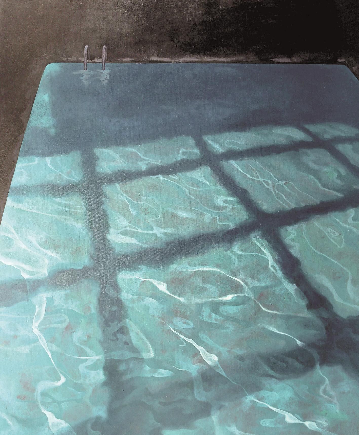 “我们不可以缺少它,但又有时害怕它。正如我们伪装的状态。”庄棪的油画《伪装》通过对水的呈现作为载体体现一种事态矛盾的本质。庄棪毕业于广州美术学院,她的敏锐观察和对现实的巧妙刻画,使观者能够借助她的作品感受当下社会文化意识和人文思想中的丰富维度。