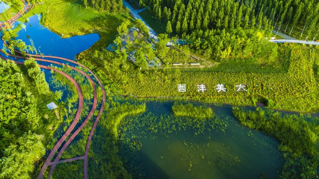 100米见绿、300米见园。这里,正涵养着一座绿色生态新城。2019年,沣西新城全面完成海绵城市试点,被联合国教科文组织批准为全球生态水文示范点。