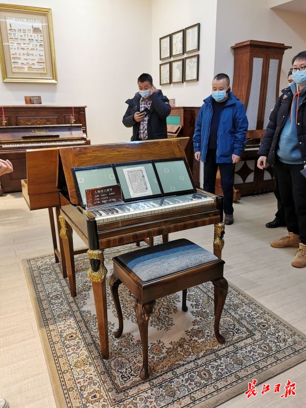 代表参观柏斯音乐集团,图为其设立的钢琴博物馆内展示的古董钢琴。记者范婷婷 摄