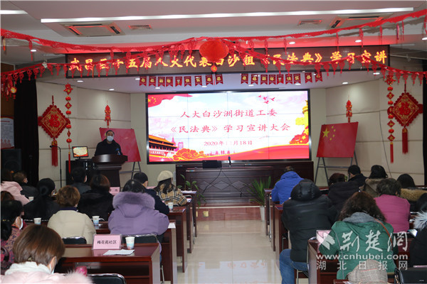 荆楚网客户端—荆楚网消息(记者李燕 通讯员谢程)12月18日,武昌区人大白沙洲街工委组织人大代表开展《民法典》宣讲活动,12个社区副主任、民政委员、居民代表、街道工作人员约70人参与本次活动。