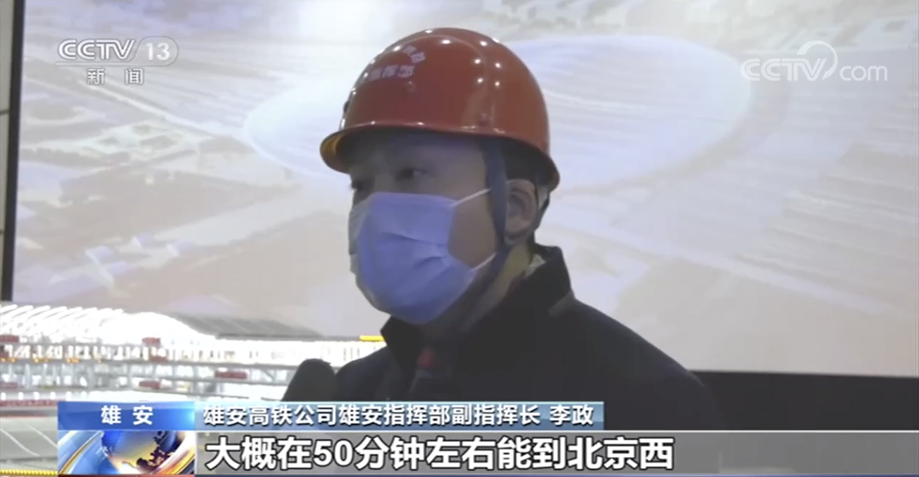 雄安高铁公司雄安指挥部副指挥长 李政:“从雄安到大兴机场是20分钟,从雄安到北京西,这其中还有一段既有线,大概在50分钟左右能到北京西,今后改造完成之后,从雄安到北京西应该在36分钟左右。”