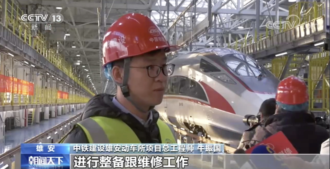 中铁建设雄安动车所项目总工程师 牛振国:“雄安动车运用所在9月底建设完成,从10月下旬开始我们就开始对试运行的列车进行整备跟维修工作。 ”