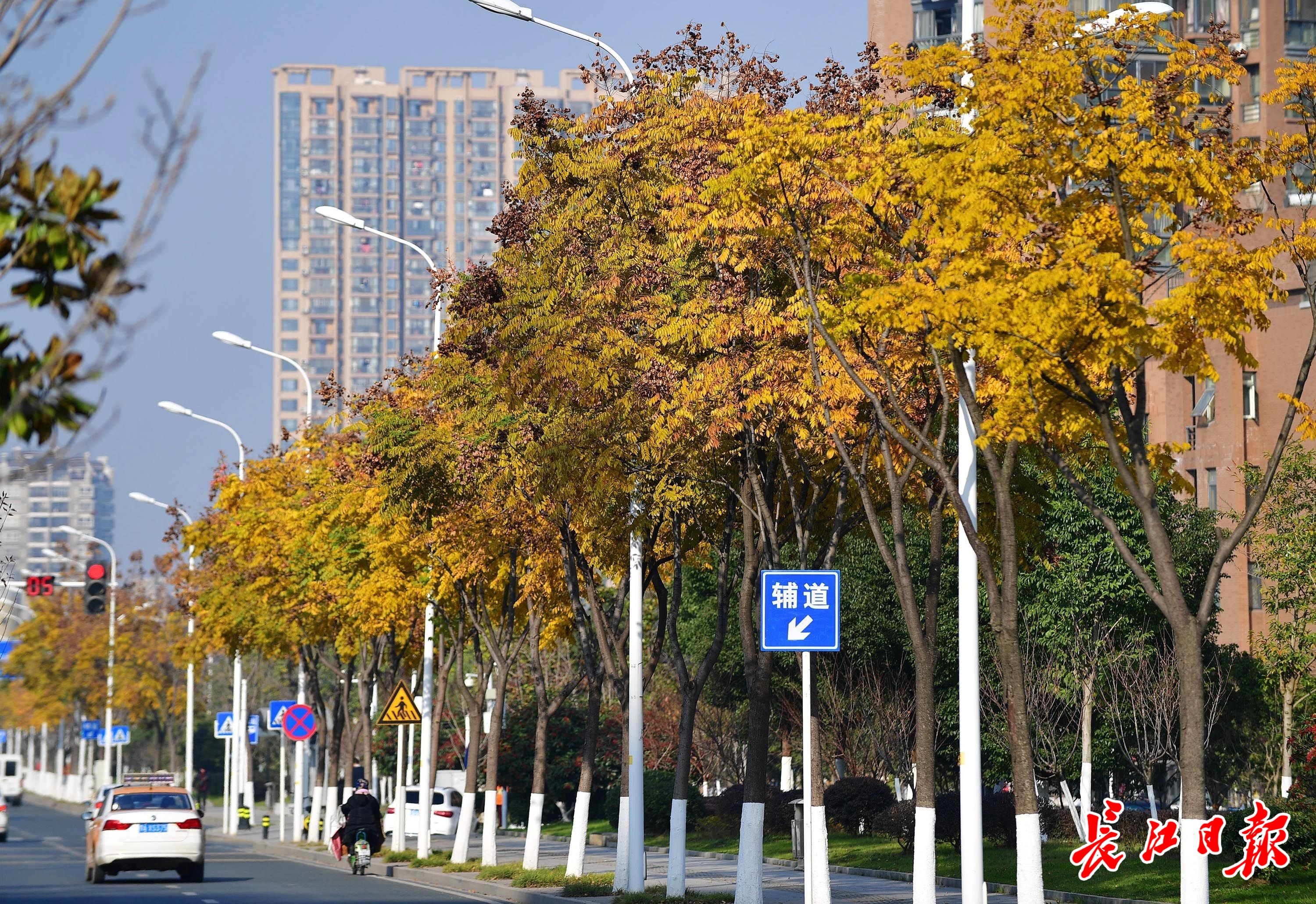 12月22日,冬日暖阳普照,金银湖环湖路上的栾树在阳光照耀下,满树金黄。记者李永刚 摄