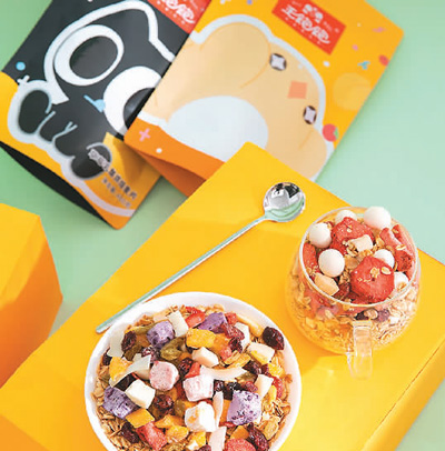 低温烘焙技术解决口感问题,麦片营养也得以保留;辅料采用天然纯植物提取的甜菊糖苷代替白砂糖,保证健康又不失甜美。一系列迎合时尚个性口味的产品,如贝贝南瓜冲泡麦片、草莓优酪乳烘焙麦片等,搭配不同颗粒大小的果干,颜值更高的同时制造口感惊喜。既是零食,又能代餐,不少减重路上苦苦挣扎的消费者,把王饱饱当作“心头好”,“每一口吃下去都是满足感。”有人这样评价。