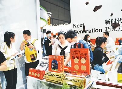 今年9月,在上海举办的第五届中国国际食品和饮料展览会上,每日黑巧吸引不少消费者选购产品。 图片由品牌方提供 |