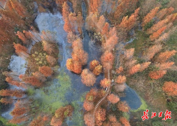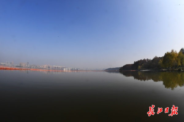 25日,江夏区藏龙岛国家湿地公园,碧波荡漾的湖面与多彩缤纷的树叶交相辉映,犹感秋未走远。 记者李子云 摄