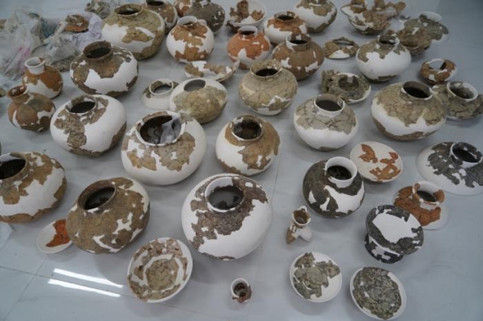 孙家岗遗址2017年发掘墓葬出土部分陶器标本。汇报人供图