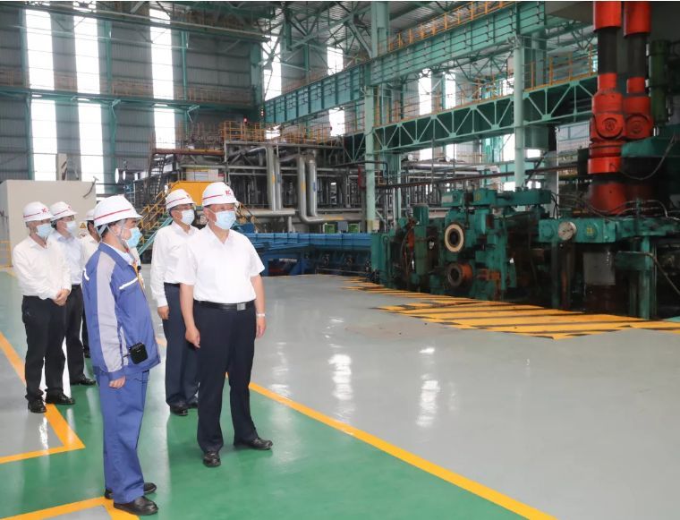 ↑8月19日上午,中共中央总书记、国家主席、中央军委主席习近平在安徽省马鞍山市考察调研。这是习近平在中国宝武马钢集团生产车间,了解企业复工复产和经营情况。新华社记者 王晔 摄